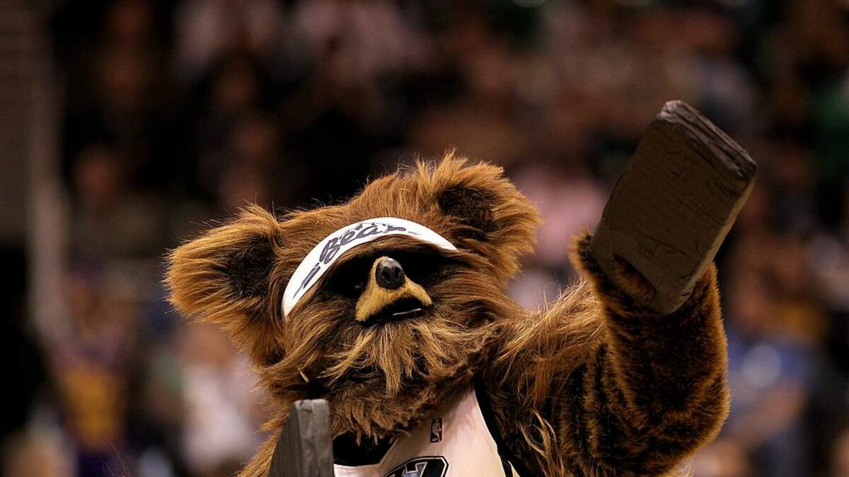 The adult totally bumps the kid on purpose to slow him down, knocking him to the ground. Cue the Utah Jazz mascot! That bear goes sprinting across the court to teach the (again, we say) ADULT a lesson!