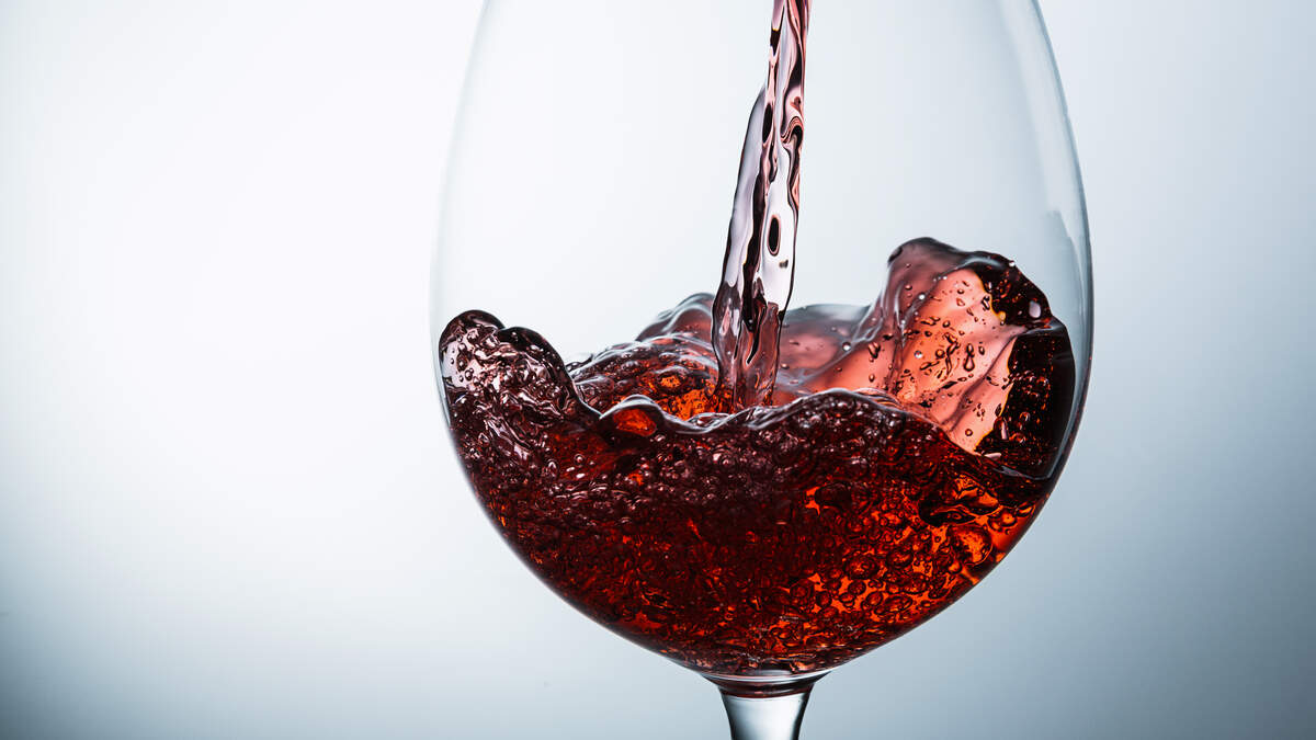 Close-Up Of Red Wine Being Poured In Glass Against White Background
